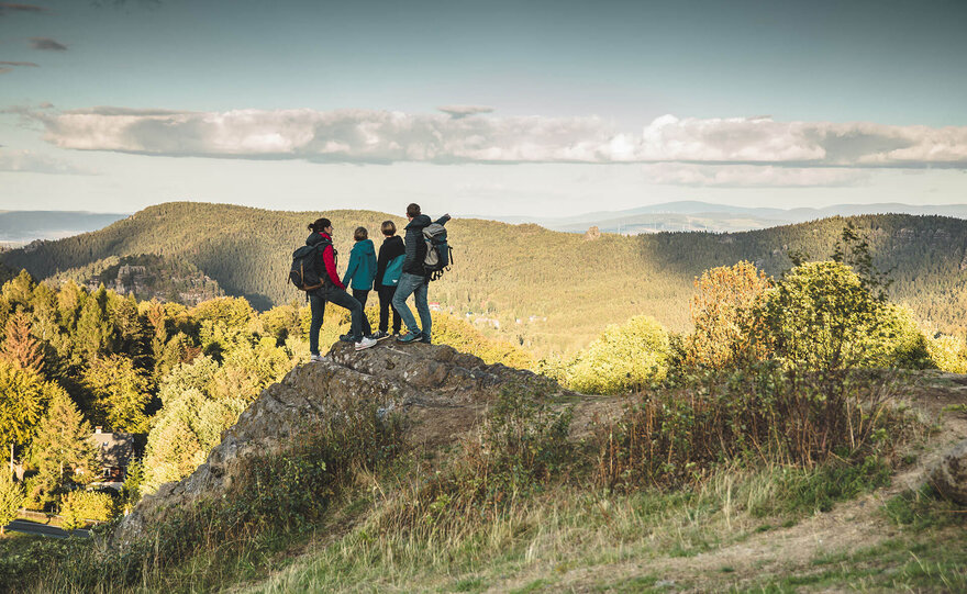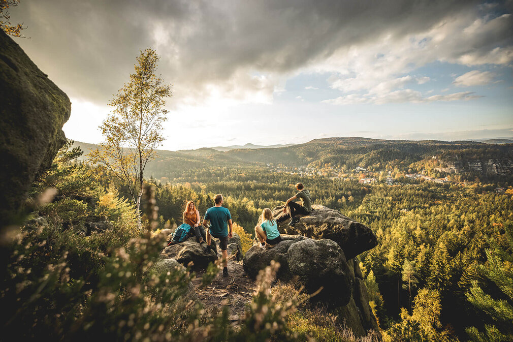 Die traumhafte Lückendorfer Felsengasse, der Hochwaldgipfel, der Alpenpfad mit den Mühlsteinbrüchen, die Kelchsteine, der Töpfer liegen in unmittelbarer Nähe.
